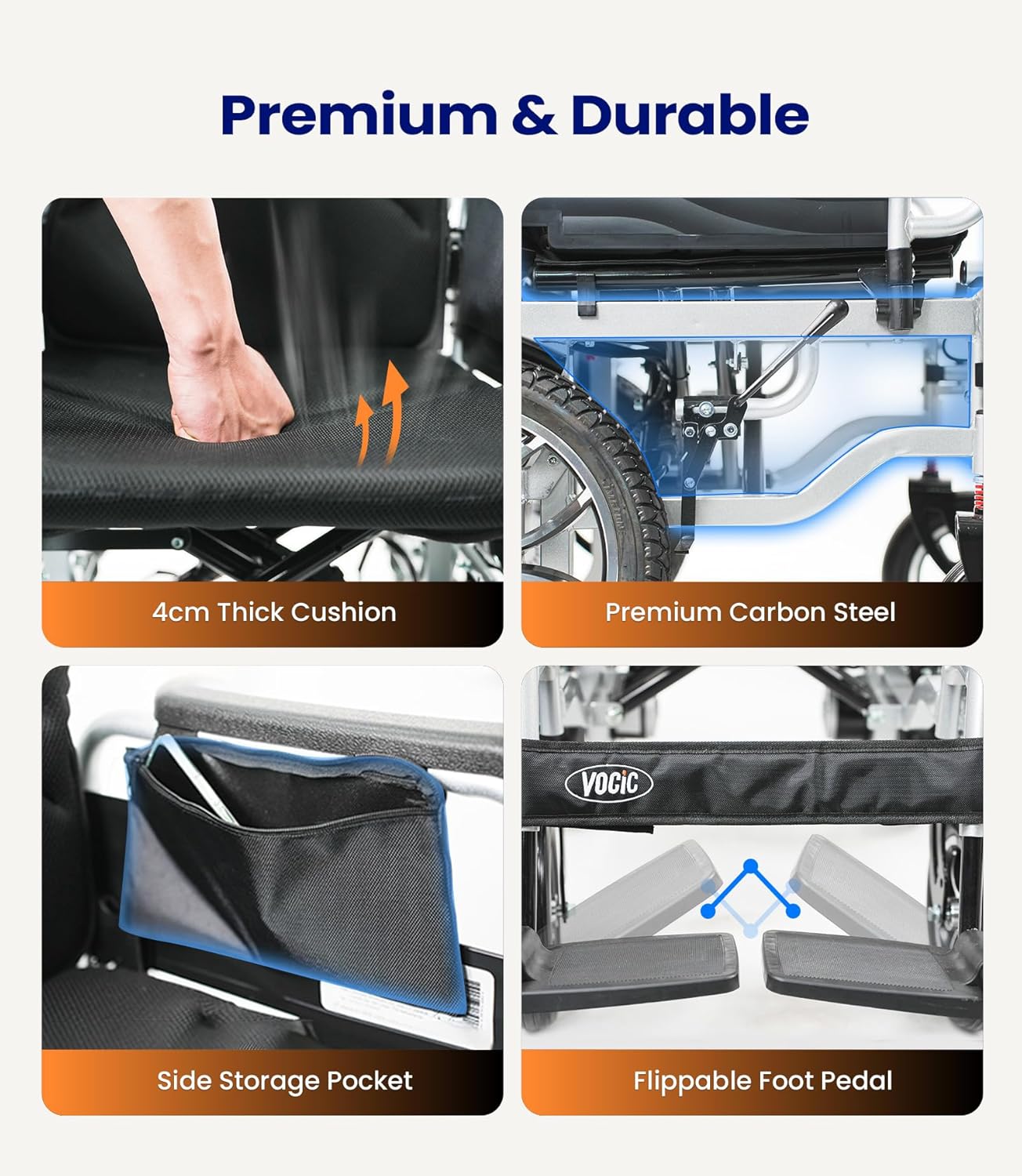 Le fauteuil roulant électrique VOCIC V56 est pliable, léger et offre une autonomie allant jusqu'à 30 km, vous offrant une grande liberté au quotidien.