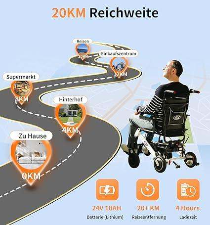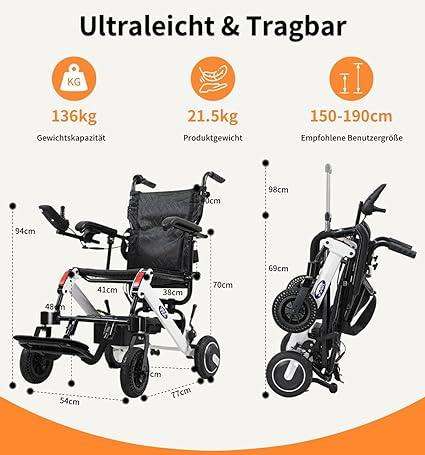 VOCIC V55 Fauteuil roulant électrique ultraléger et portable, autonomie de 20 km, homologué par les compagnies aériennes